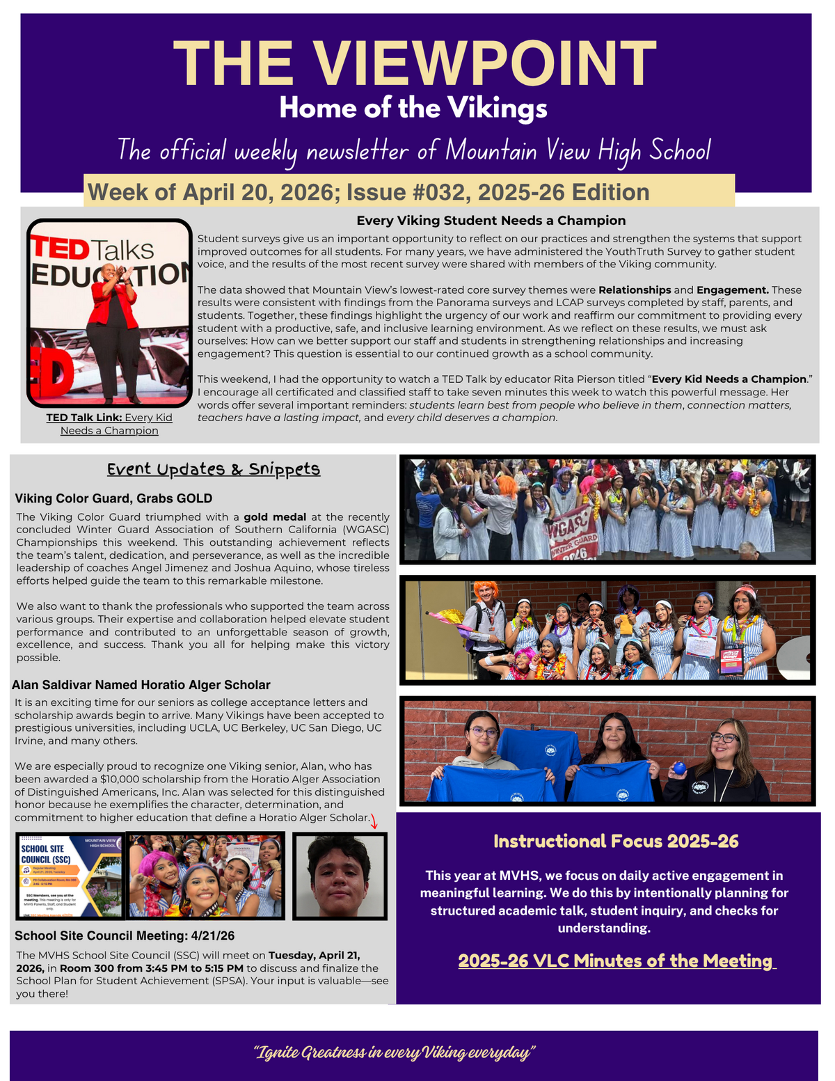 Mountain View High School students will be self-directed learners and powerful communicators who possess the knowledge and skills necessary for achieving college and career readiness.